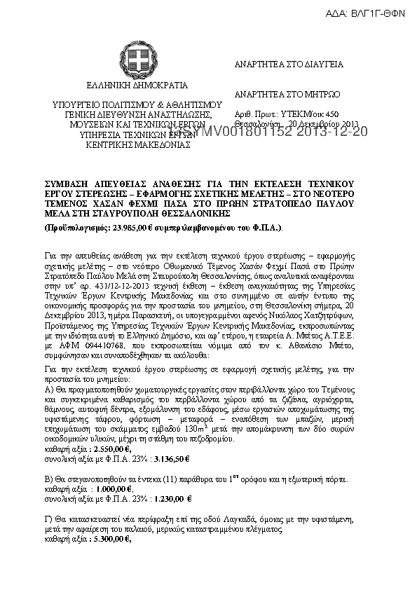 3. ΣΥΜΒΑΣΗ ΑΠ. ΑΝΑΘΕΣΗΣ ΓΙΑ ΤΗΝ ΕΚΤΕΛΕΣΗ ΕΡΓΟΥ ΣΤΕΡΕΩΣΗΣ ΣΤΟ ΤΕΜΕΝΟΣ ΣΤΡ. Π.ΜΕΛΑ ΑΠΟ ΥΤΕΚΜ