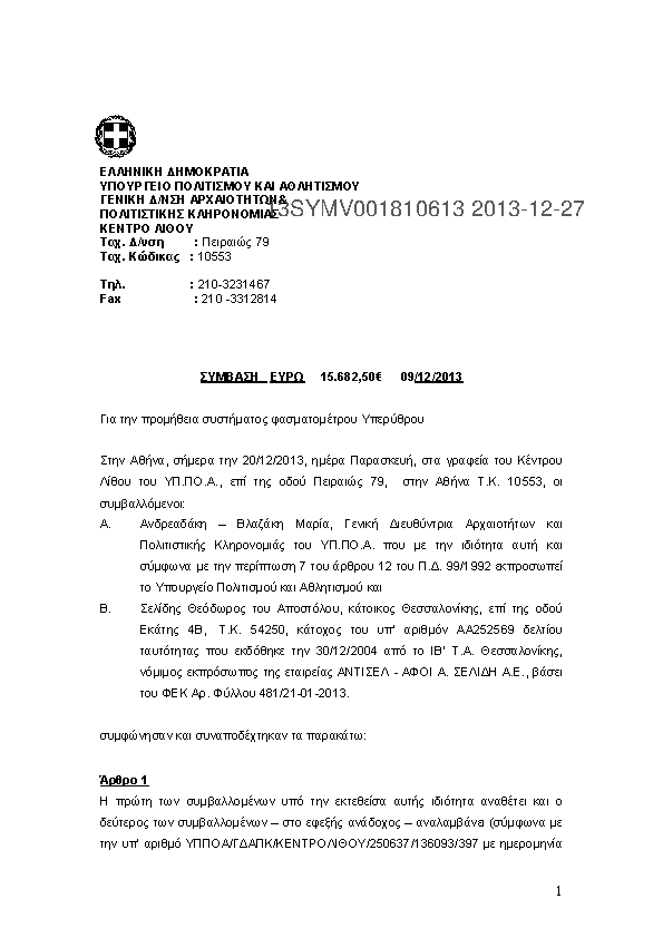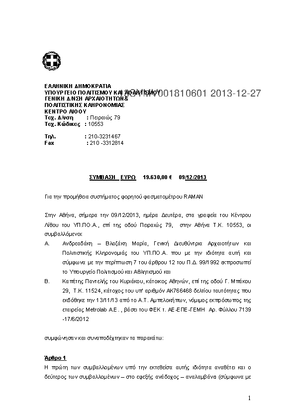 1. ΚΕΝΤΡΟ ΛΙΘΟΥ ΕΡΕΥΝΑ ΓΙΑ ΤΗ ΣΥΝΤΗΡΗΣΗ ΑΡΧΑΙΩΝ ΥΛΙΚΩΝ ΚΑΙ ΜΕΛΕΤΗ ΤΗΣ ΑΡΧΑΙΑΣ ΤΕΧΝΟΛΟΓΙΑΣ