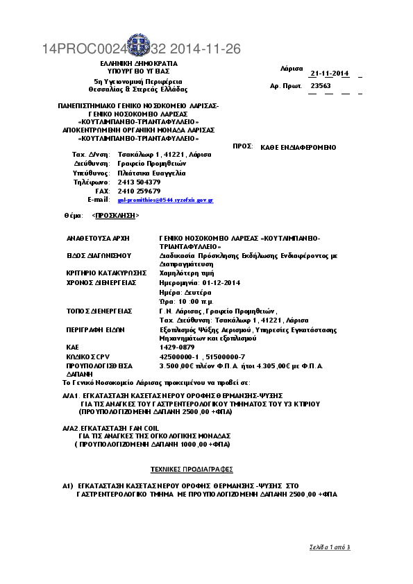 Αναζήτηση σε προκηρύξεις και συμβάσεις για: