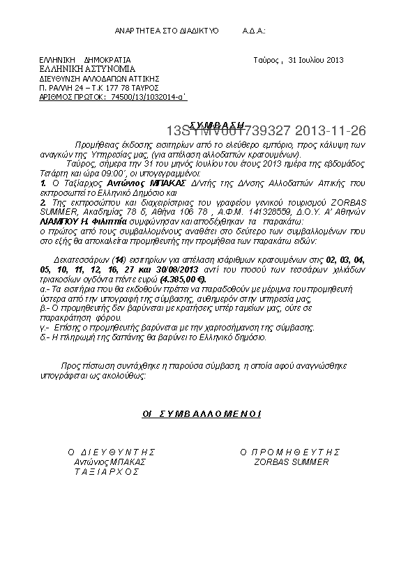 1. Σύμβαση προμήθειας έκδοσης εισιτηρίων από το ελεύθερο εμπόριο