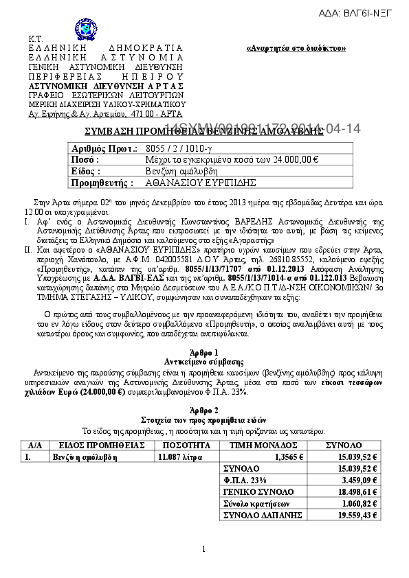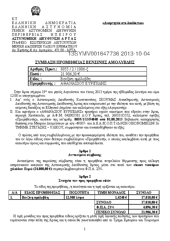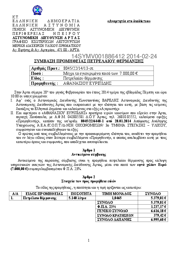 5. Σύμβαση προμήθειας πετρελαίου θέρμανσης.