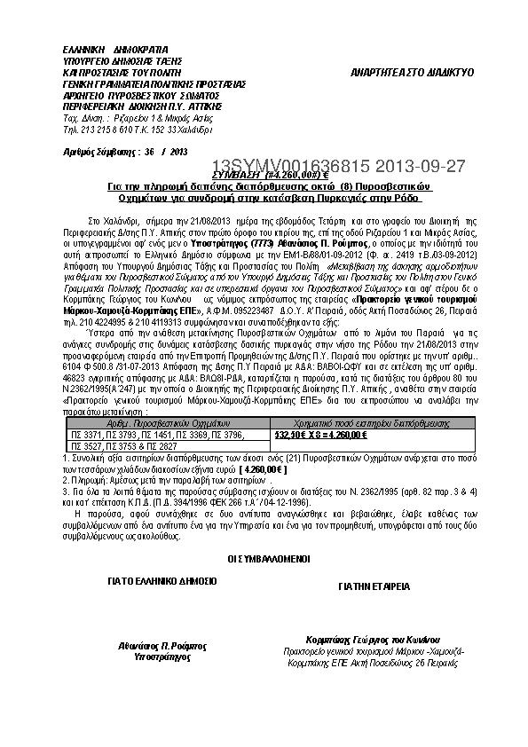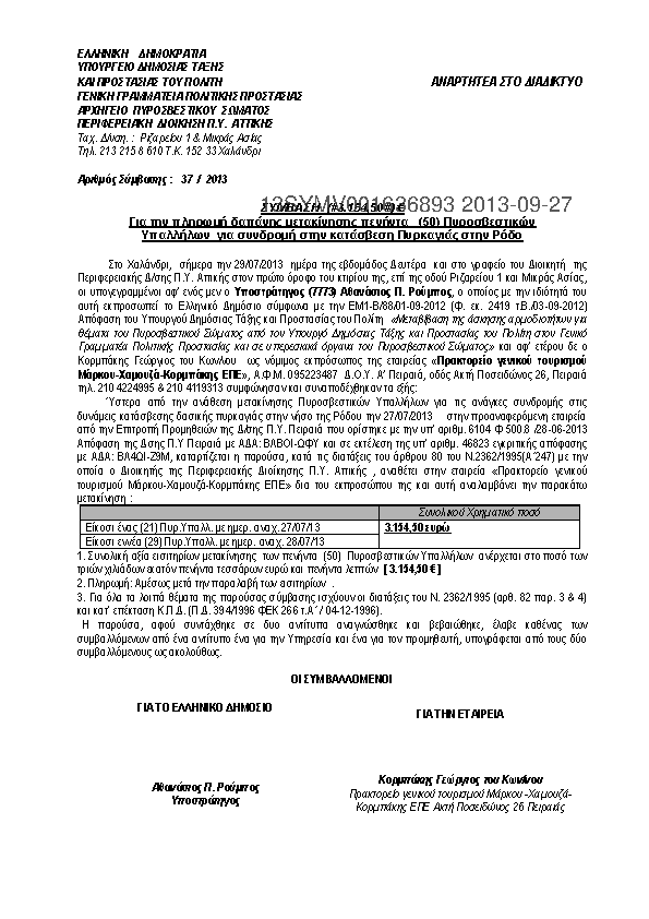 3. Πληρωμή δαπάνης μετακίνησης πενήντα Πυροσβεστικών Υπαλλήλων στην κατάσβεση Πυρκαγιάς στην Ρόδο
