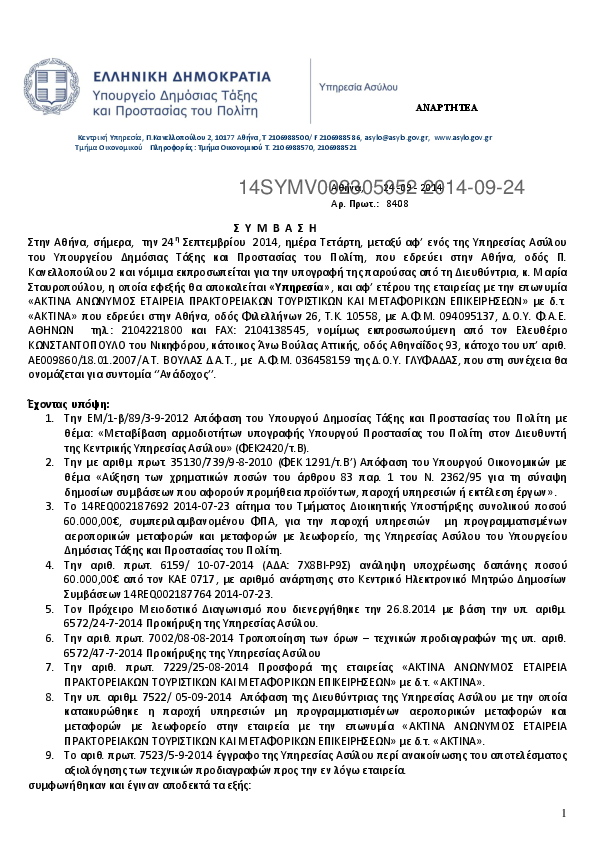 8. ΣΥΜΒΑΣΗ ΓΙΑ ΠΑΡΟΧΗ ΥΠΗΡΕΣΙΩΝ ΑΕΡΟΠΟΡΙΚΩΝ ΜΕΤΑΦΟΡΩΝ ΚΑΙ ΜΕΤΑΦΟΡΩΝ ΜΕ ΛΕΩΦΟΡΕΙΟ.