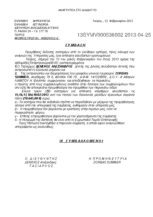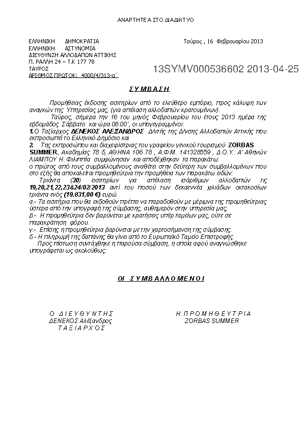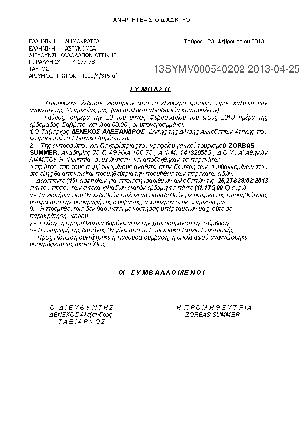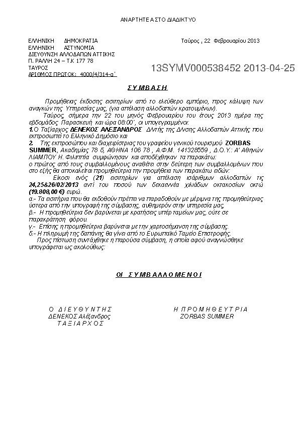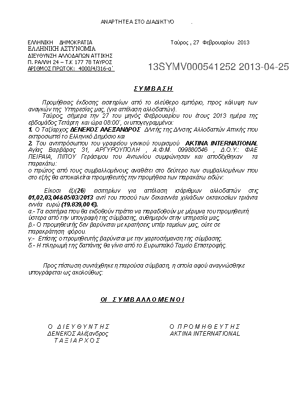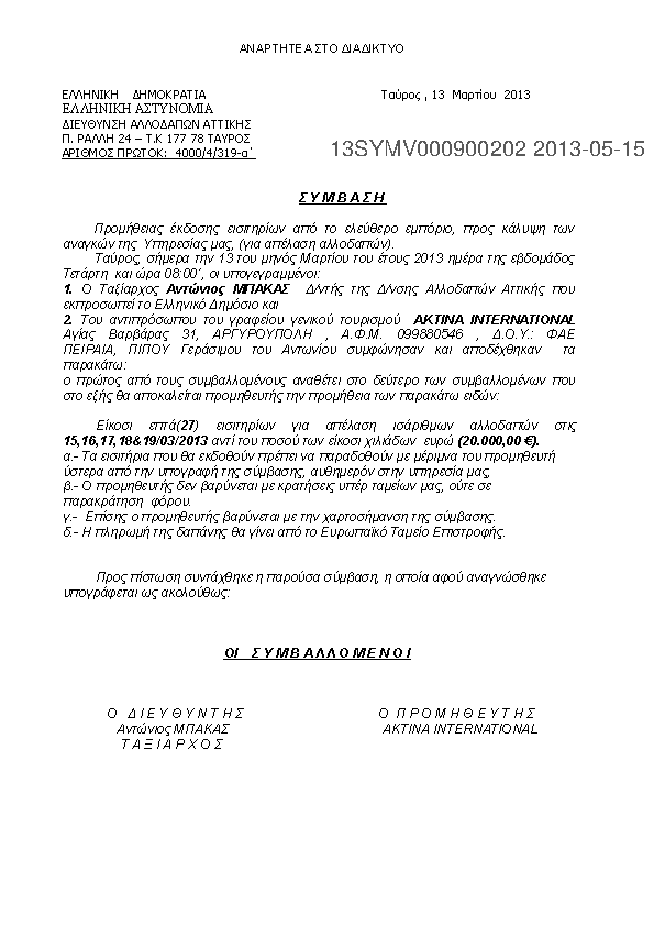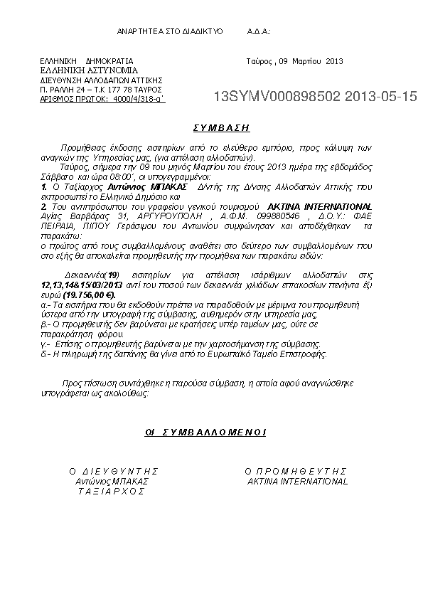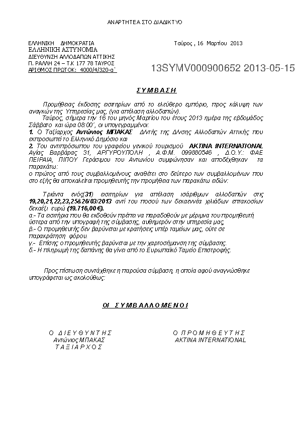 1. Σύμβαση προμήθειας έκδοσης εισιτηρίων από το ελεύθερο εμπόριο
