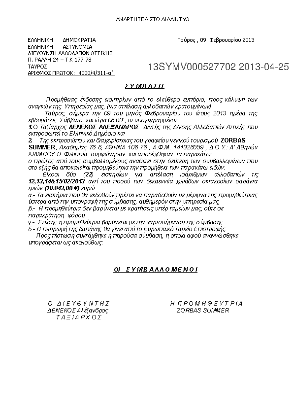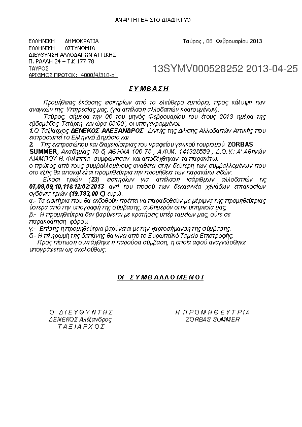 8. Σύμβαση προμήθειας έκδοσης εισιτηρίων από το ελεύθερο εμπόριο