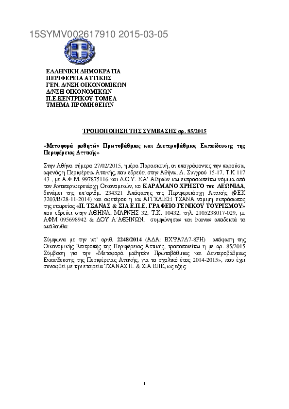 10. Τροποποίηση Σύμβασης 85/2015 Μεταφορά μαθητών Π.Ε. Κεντρικού Τομέα
