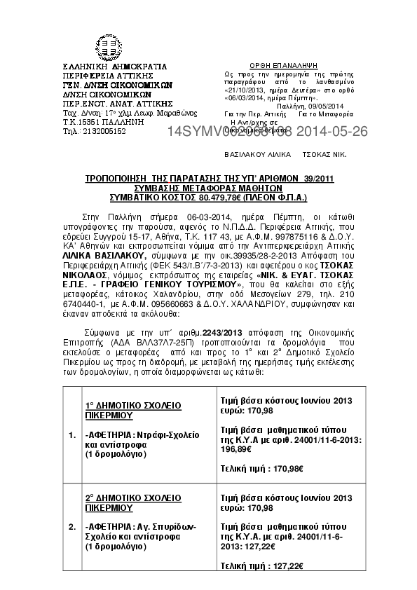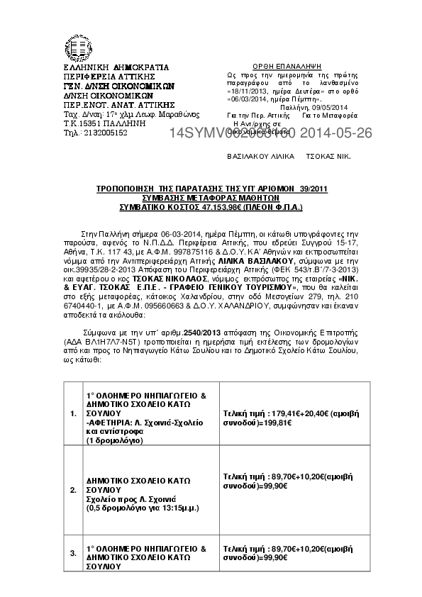 1. ΟΡΘΗ ΕΠΑΝΑΛΗΨΗ ΤΡΟΠΟΠΟΙΗΣΗΣ ΠΑΡΑΤΑΣΗΣ ΣΥΜΒΑΣΗΣ ΓΙΑ ΜΕΤΑΦΟΡΑ ΜΑΘΗΤΩΝ ΠΕΡΙΦΕΡΕΙΑΣ ΑΤΤΙΚΗΣ