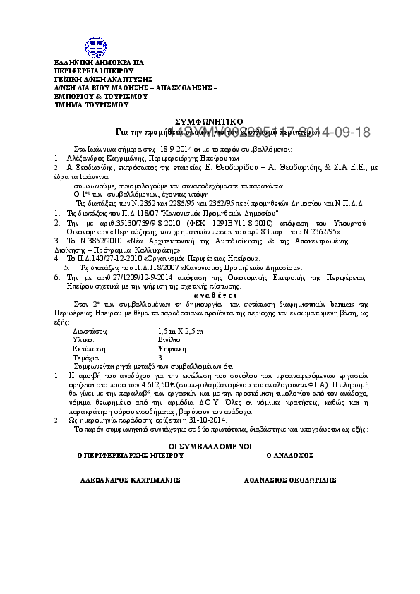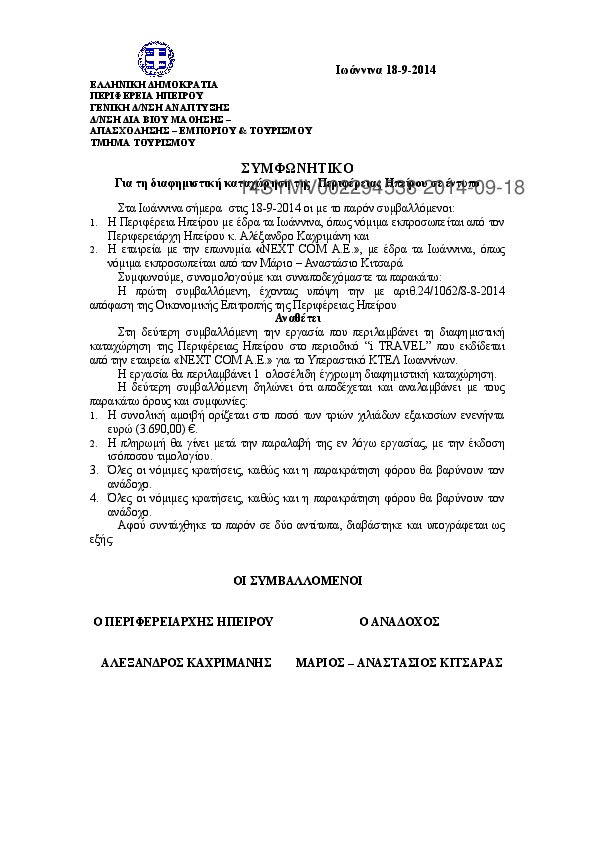 2. Συμφωνητικό για τη διαφημιστική καταχώρηση της Περιφέρειας Ηπείρου σε έντυπο