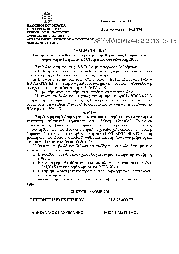 8. ΣΥΜΦΩΝΗΤΙΚΟ ΓΙΑ ΤΗΝ ΕΝΟΙΚΙΑΣΗ ΕΚΘΕΣΙΑΚΟΥ ΠΕΡΙΠΤΕΡΟΥ ΣΤΟ ΦΕΣΤΙΒΑΛ ΤΟΥΡΙΣΜΟΥ ΘΕΣΣΑΛΟΝΙΚΗ