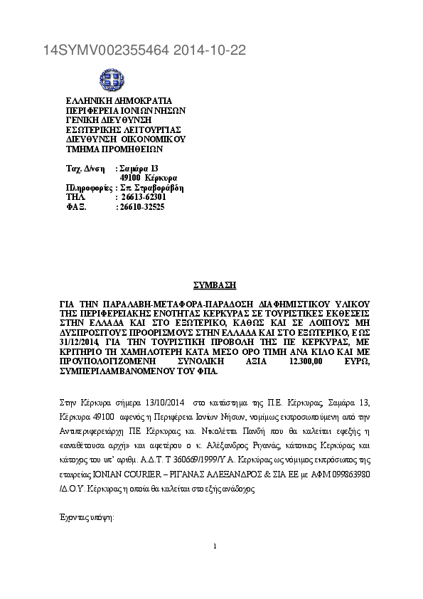 Αναζήτηση σε προκηρύξεις και συμβάσεις για: