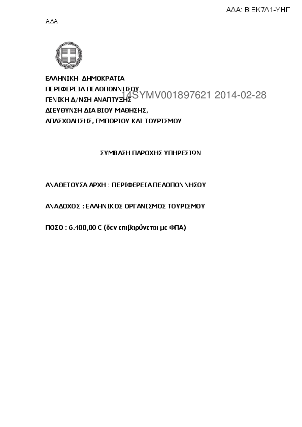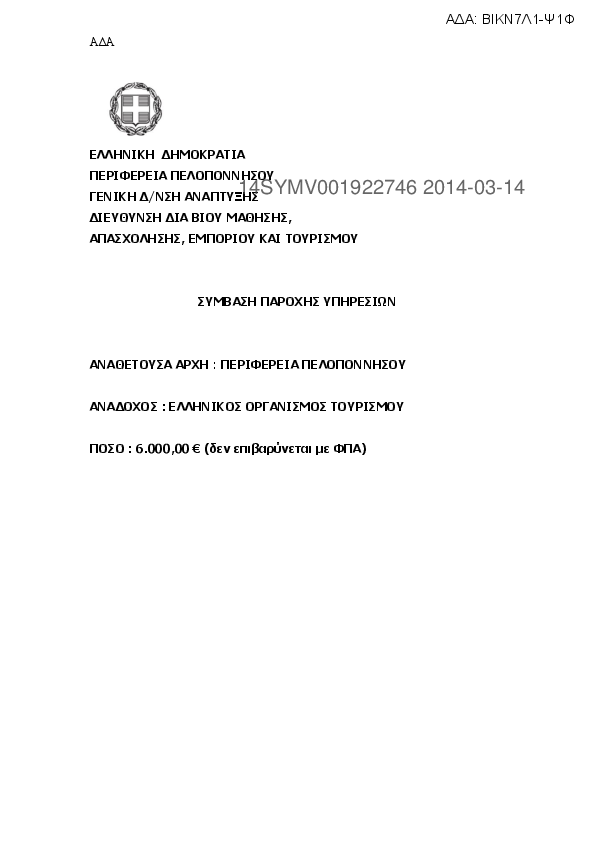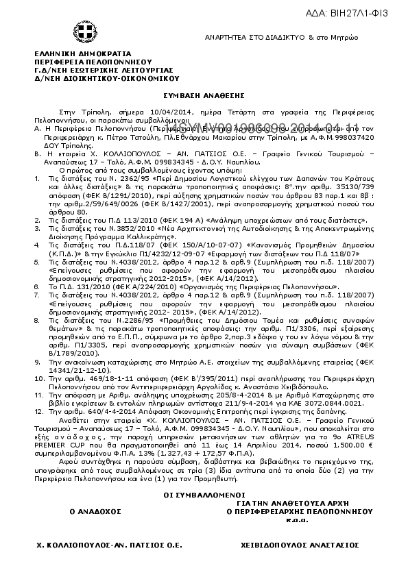6. ΣΥΜΒΑΣΗ ΑΝΑΘΕΣΗΣ ΣΤΟΝ "Χ. ΚΟΛΛΙΟΠΟΥΛΟΣ - ΑΝ. ΠΑΤΣΙΟΣ Ο.Ε." - Γραφείο Γενικού Τουρισμού