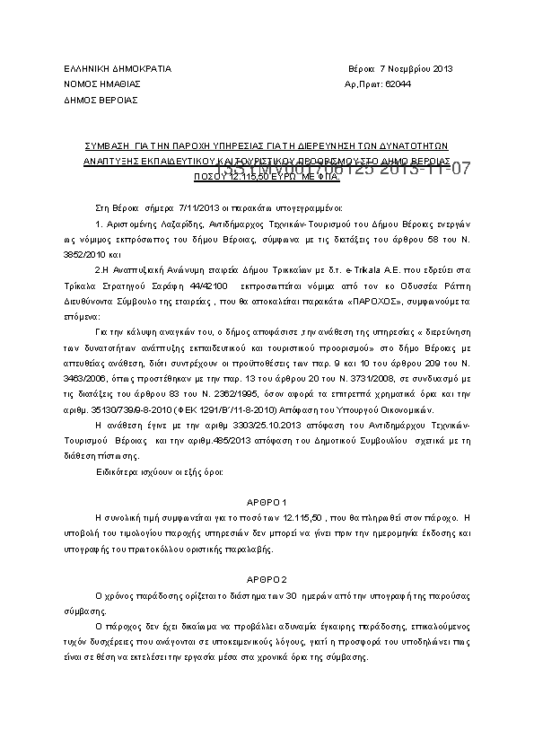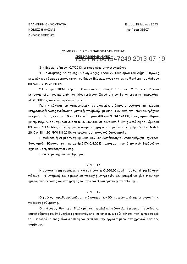 3. Συμβαση προμηθειας τουριστικων χαρτων