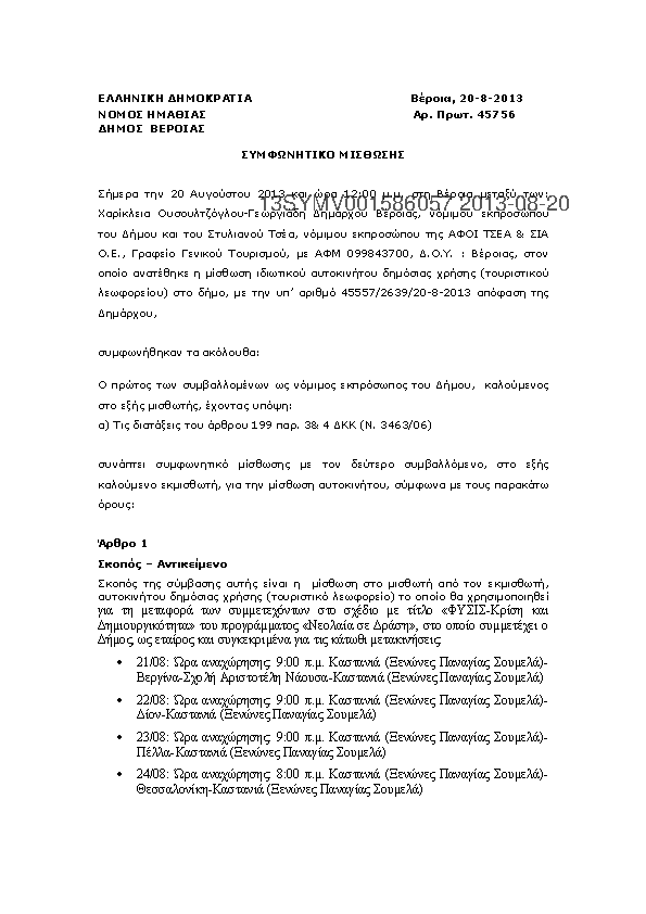 8. ΣΥΜΒΑΣΗ ΠΡΟΜΗΘΕΙΑΣ ΕΛΑΣΤΙΚΩΝ ΟΧΗΜΑΤΩΝ ΕΤΟΥΣ 2013