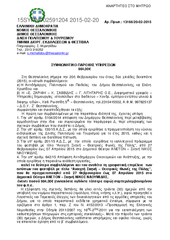 4. ΣΥΜΦΩΝΗΤΙΚΟ ΠΑΡΟΧΗΣ ΥΠΗΡΕΣΙΩΝ Συμεωνίδη (Δ/ντής Ορχήστρας),