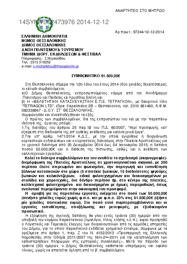 Αναζήτηση σε προκηρύξεις και συμβάσεις για: