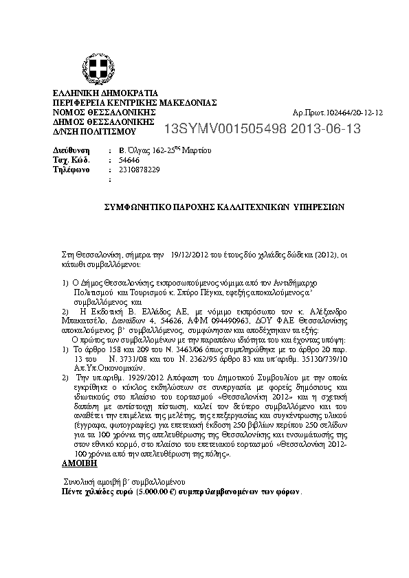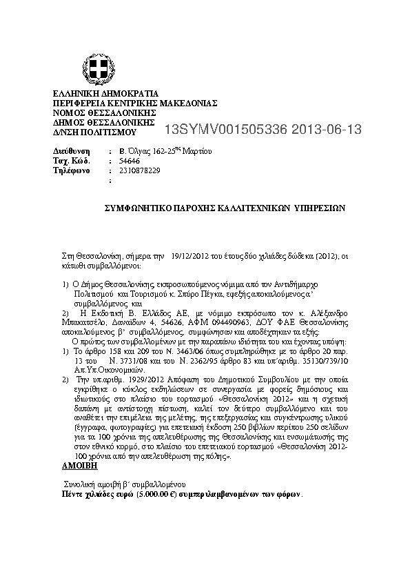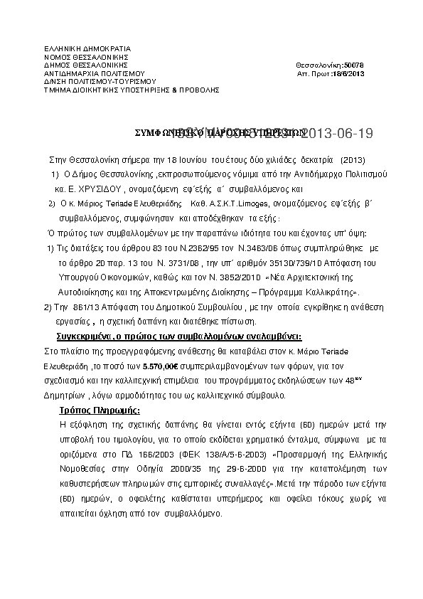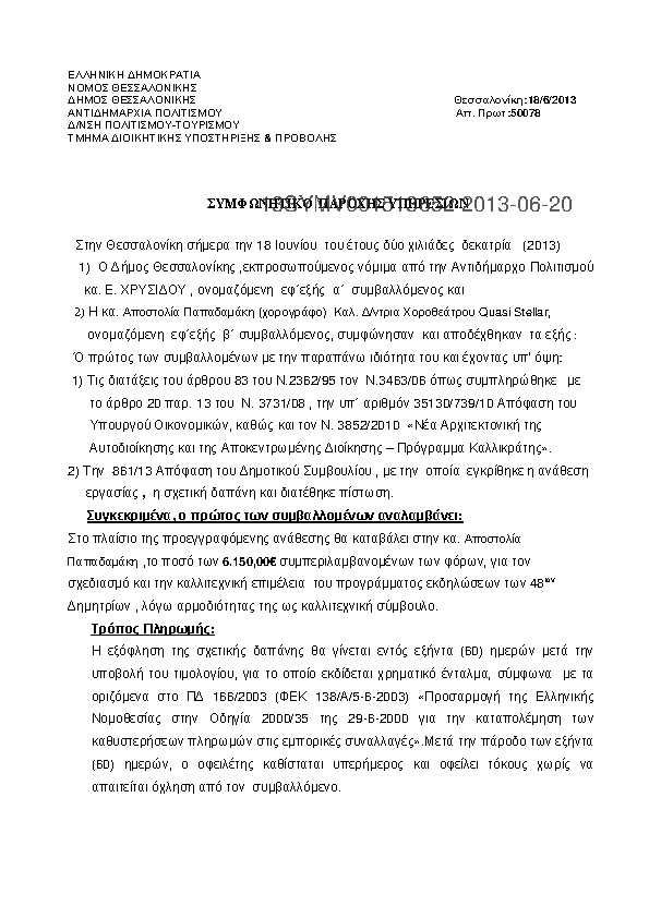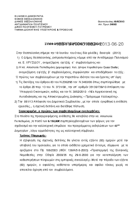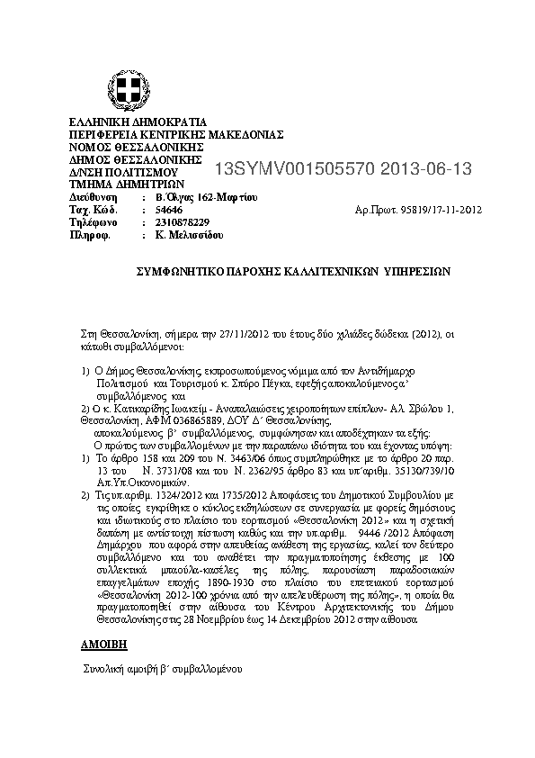 6. ΣΥΜΦΩΝΗΤΙΚΌ ΠΑΡΟΧΗΣ ΚΑΛΛΙΤΕΧΝΙΚΩΝ ΥΠΗΡΕΣΙΩΝ (ΚΑΤΙΚΑΡΙΔΗΣ ΙΩΑΚΕΙΜ)