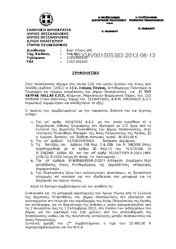 8. ΜΕΤΑΦΟΡΑ ΑΕΡΟΠΟΡΙΚΩΣ ΕΡΓΩΝ ΤΕΧΝΗΣ ΑΠΟ ΤΗ ΔΗΜΟΤΙΚΗ ΠΙΝΑΚΟΘΗΚΗ ΤΟΥ Δ.Θ. ΣΤΗΝ ΑΓΙΑ ΠΕΤΡΟΥΠΟΛΗ