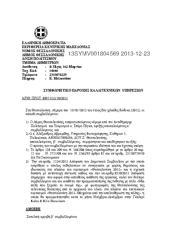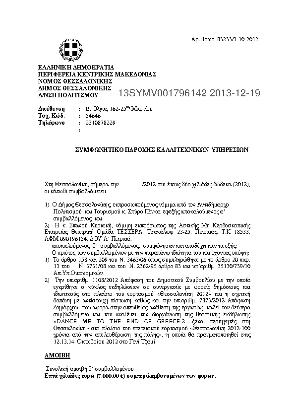 7. ΣΥΜΦΩΝΗΤΙΚΌ ΠΑΡΟΧΗΣ ΚΑΛΛΙΤΕΧΝΙΚΩΝ ΥΠΗΡΕΣΙΩΝ (ΑΚΤΙΣ ΑΕΛΙΟΥ)