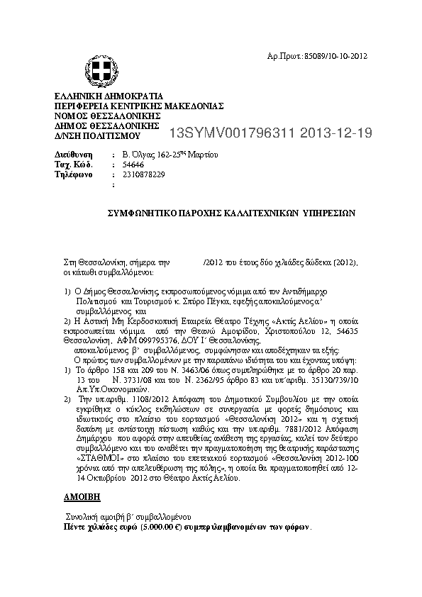 5. ΣΥΜΦΩΝΗΤΙΚΟ ΠΑΡΟΧΗΣ ΚΑΛΛΙΤΕΧΝΙΚΩΝ ΥΠΗΡΕΣΙΩΝ (ΣΠΑΝΟΥ)