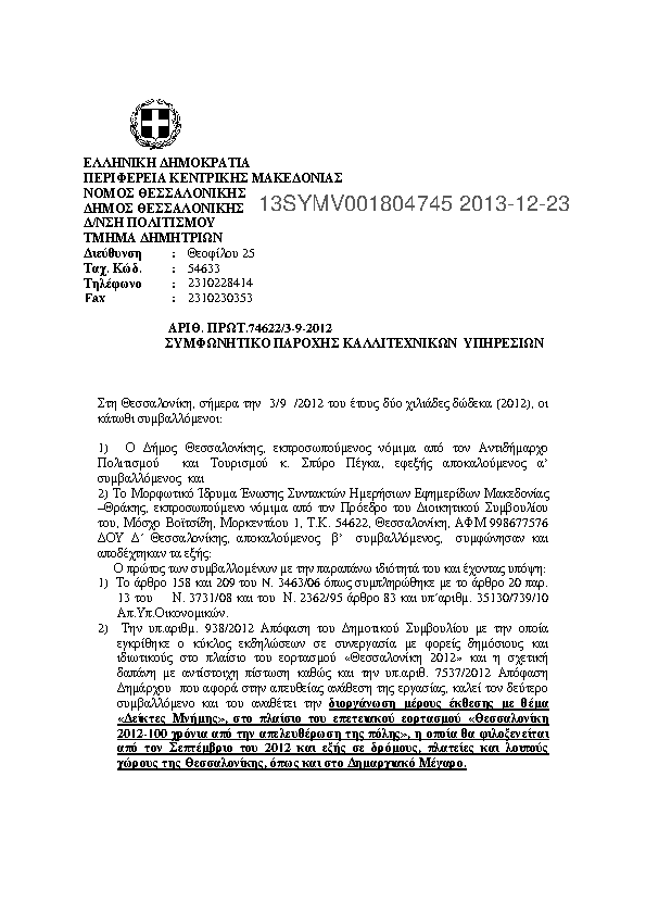 9. ΣΥΜΦΩΝΗΤΙΚΌ ΠΑΡΟΧΗΣ ΚΑΛΛΙΤΕΧΝΙΚΩΝ ΥΠΗΡΕΣΙΩΝ (ΙΝΣΤΙΤΟΥΤΟ ΔΗΜΟΚΡΑΤΙΑΣ ΚΩΝ.ΚΑΡΑΜΑΝΛΗΣ)