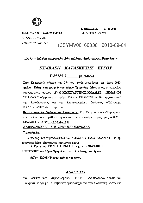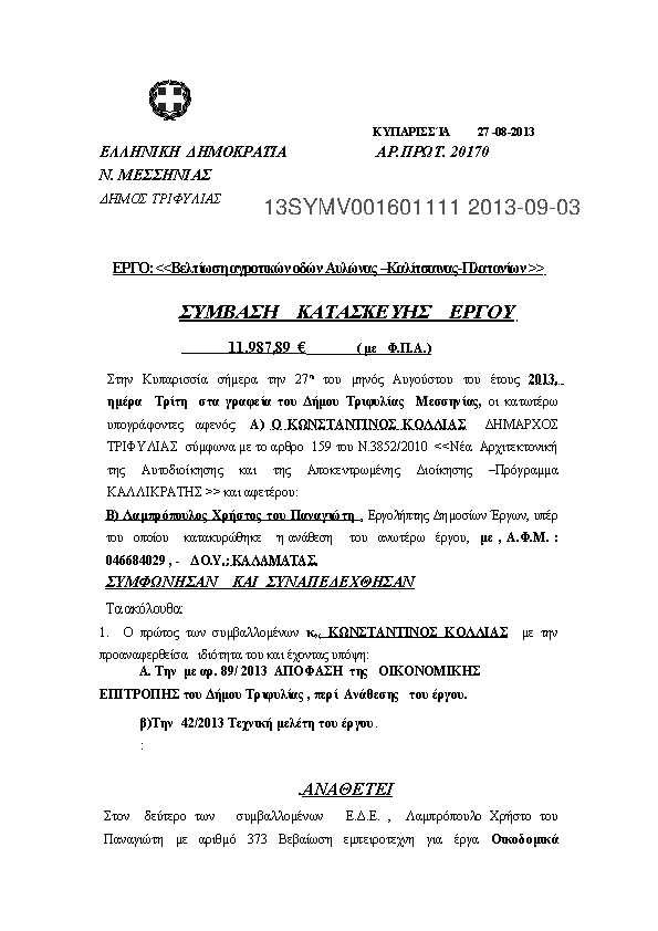 9. ΣΥΜΒΑΣΗ ΚΑΤΑΣΚΕΥΗΣ ΕΡΓΟΥ ΒΕΛΤΙΩΣΗ ΑΓΡΟΤΙΚΩΝ ΟΔΩΝ ΑΥΛΩΝΑΣ