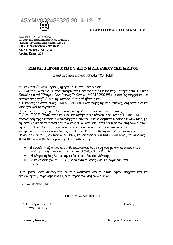 7. ΣΥΜΒΑΣΗ ΠΡΟΜΗΘΕΙΑΣ ΥΛΙΚΩΝ ΜΕΤΑΛΛΙΚΟΥ ΣΚΕΠΑΣΤΡΟΥ