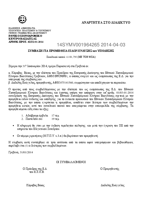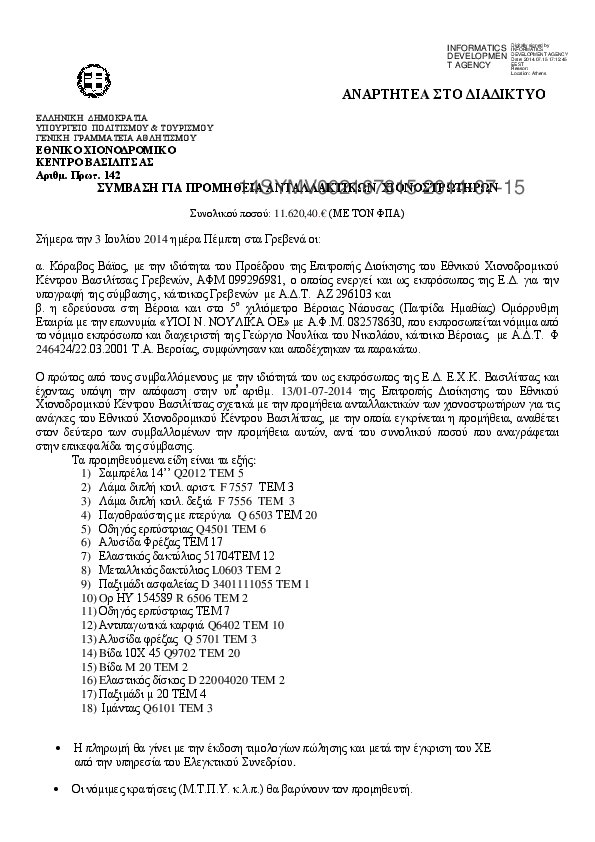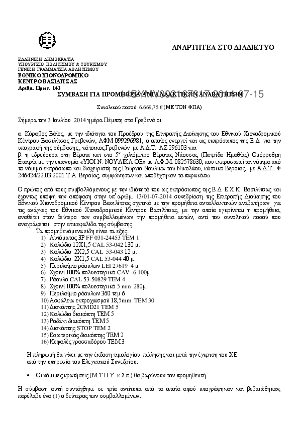 6. ΣΥΜΒΑΣΗ ΠΡΟΜΗΘΕΙΑΣ ΑΝΤΑΛΛΑΚΤΙΚΩΝ ΧΙΟΝΟΣΤΡΩΤΗΡΩΝ