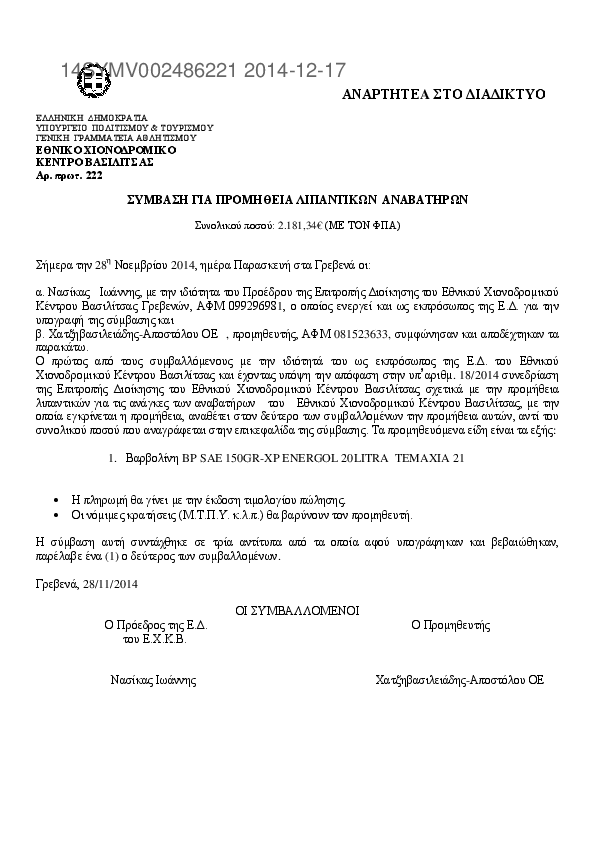 5. ΣΥΜΒΑΣΗ ΠΡΟΜΗΘΕΙΑΣ ΑΝΤΑΛΛΑΚΤΙΚΩΝ ΑΝΑΒΑΤΗΡΩΝ