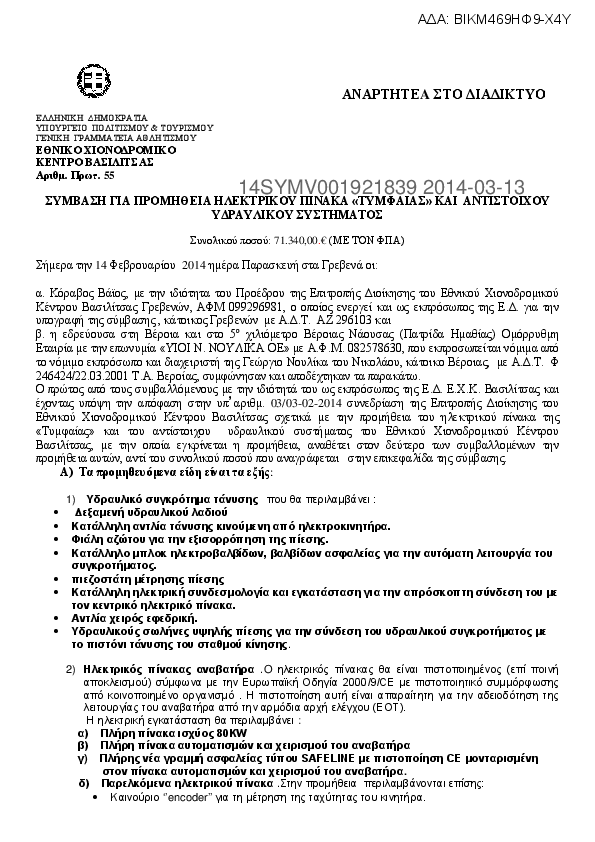 1. ΣΥΜΒΑΣΗ ΠΡΟΜΗΘΕΙΑΣ ΗΛΕΚΤΡΙΚΟΥ ΠΙΝΑΚΑ ΚΑΙ ΥΔΡΑΥΛΙΚΟΥ ΣΥΣΤΗΜΑΥΟΣ