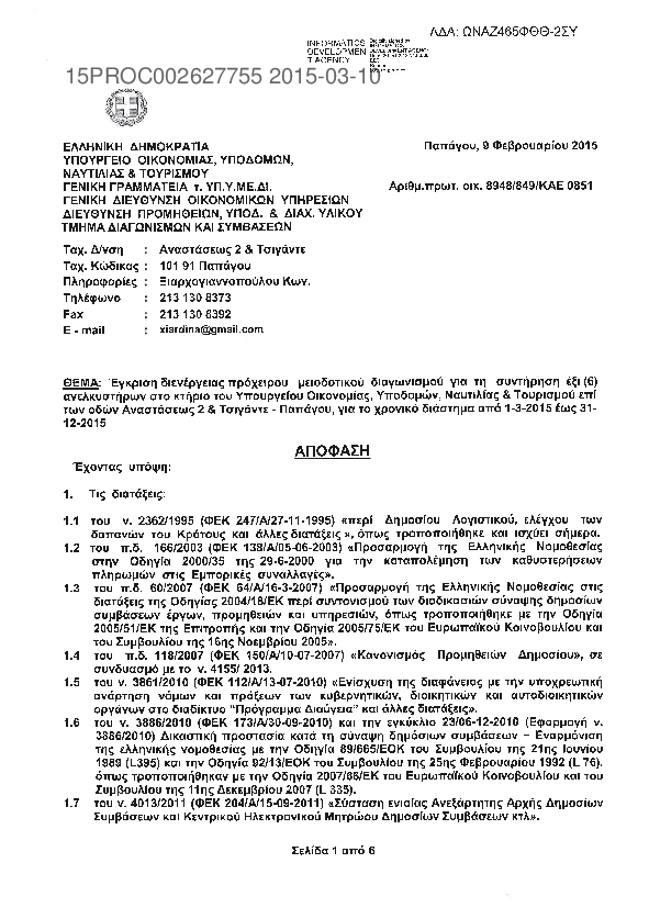 1. ΕΤΗΣΙΑ ΜΙΣΘΩΣΗ ΘΕΣΕΩΝ ΣΤΑΘΜΕΥΣΗΣ ΚΑΙ ΦΥΛΑΞΗ ΤΡΟΧΟΦΟΡΩΝ ΤΟΥ ΥΠΟΥΡΓΕΙΟΥ