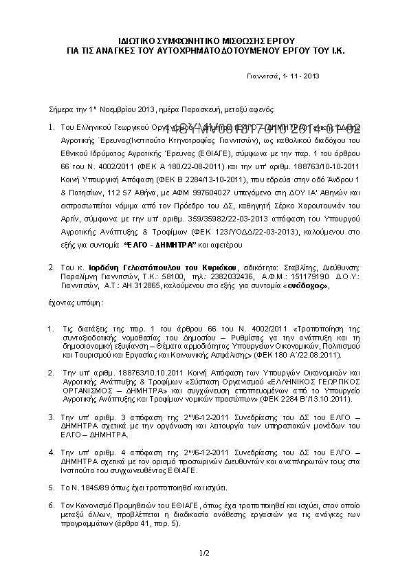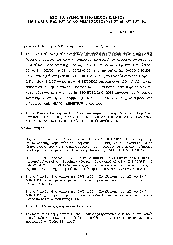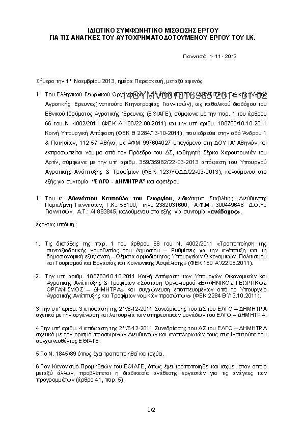1. Σύμβαση προμήθειας υγρών καυσίμων πετρελαίου θέρμανσηςΥπηρεσιών ΠΚΜ Ν.Θεσ/νίκης για το υπόλοιπο 2013
