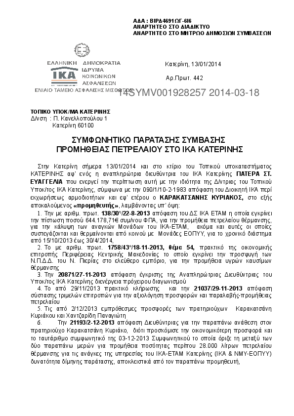 1. ΣΥΜΦΩΝΗΤΙΚΟ ΠΑΡΑΤΑΣΗΣ ΣΥΜΒΑΣΗΣ ΠΡΟΜΗΘΕΙΑΣ ΠΕΤΡΕΛΑΙΟΥ ΘΕΡΜΑΝΣΗΣ