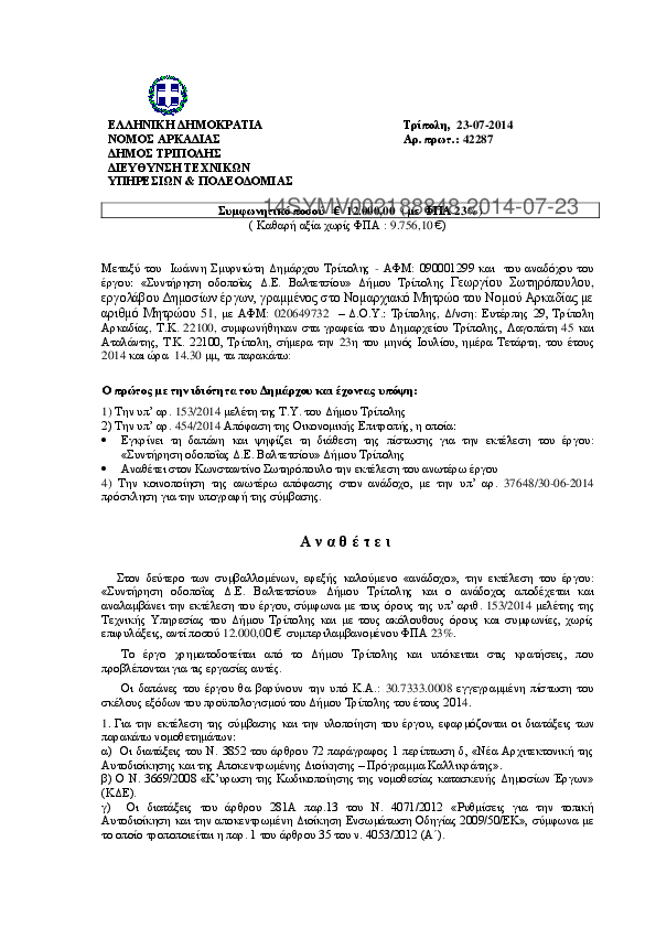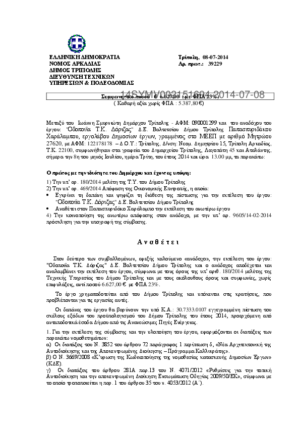 8. Συντήρηση οδοποΐας Δ.Ε. Βαλτετσιου