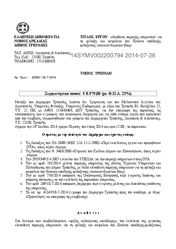 5. Φύλαξη και ασφάλεια του Ξενώνα υποδοχής-φιλοξενίας γυναικών θυμάτων βίας