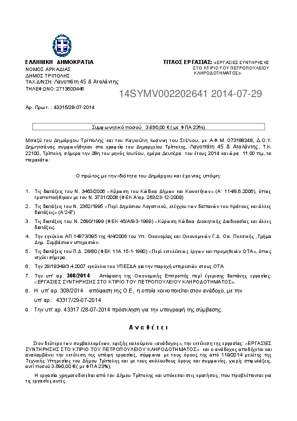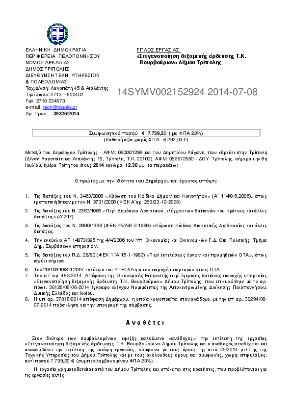 Αναζήτηση σε προκηρύξεις και συμβάσεις για:
