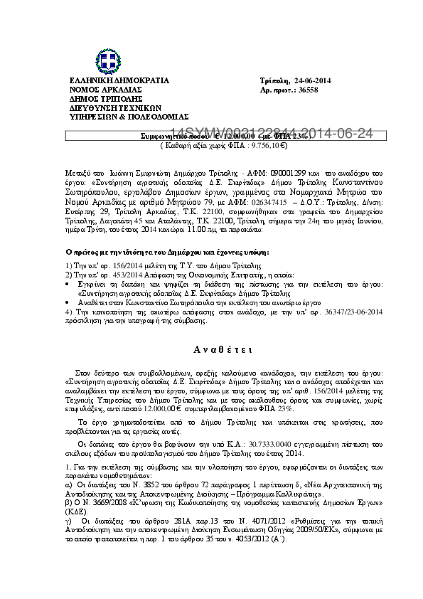 1. Συντήρηση αγροτικής οδοποΐας Δ.Ε. Σκιρίτιδας