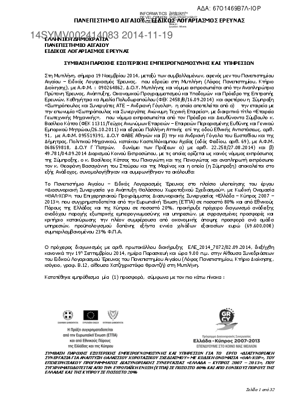 Αναζήτηση σε προκηρύξεις και συμβάσεις για: