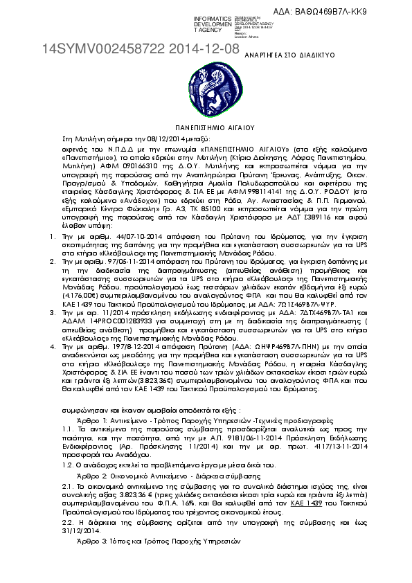 10. "Προμήθεια εξοπλισμού για τις Ακαδημαϊκές Μονάδες του Πανεπιστημίου Αιγαίου σε Ρόδο και Σύρο"