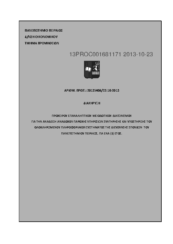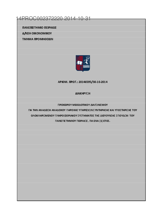 3. Πρόχειρος επαναληπτικός μειοδοτικός διαγωνισμός για την ανάδειξη αναδόχου παροχής υπηρεσιών συντήρησης και υποστήριξης του Ολοκληρωμένου Πληροφοριακού Συστήματος, της Διεύθυνσης Σπουδών, του Πανεπιστημίου Πειραιώς, για ένα (1) έτος.