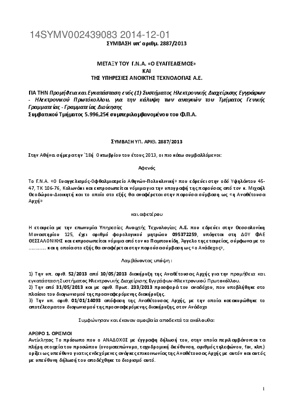 5. Το Γ.Ν.Α. «Ο ΕΥΑΓΓΕΛΙΣΜΟΣ-ΟΦΘΑΛΜΙΑΤΡΕΙΟ ΑΘΗΝΩΝ-ΠΟΛΥΚΛΙΝΙΚΗ» έχοντας υπόψη τις σχετικές διατάξεις του Ν.2286/95, Ν. 2955/01, Ν. 3329/05, Ν. 3580/2007. Ν.3846/10 και των Π.Δ.118/2007 & Π.Δ 60/2007, όπως αυτές ισχύουν σήμερα, προκηρύσσει Πρ...