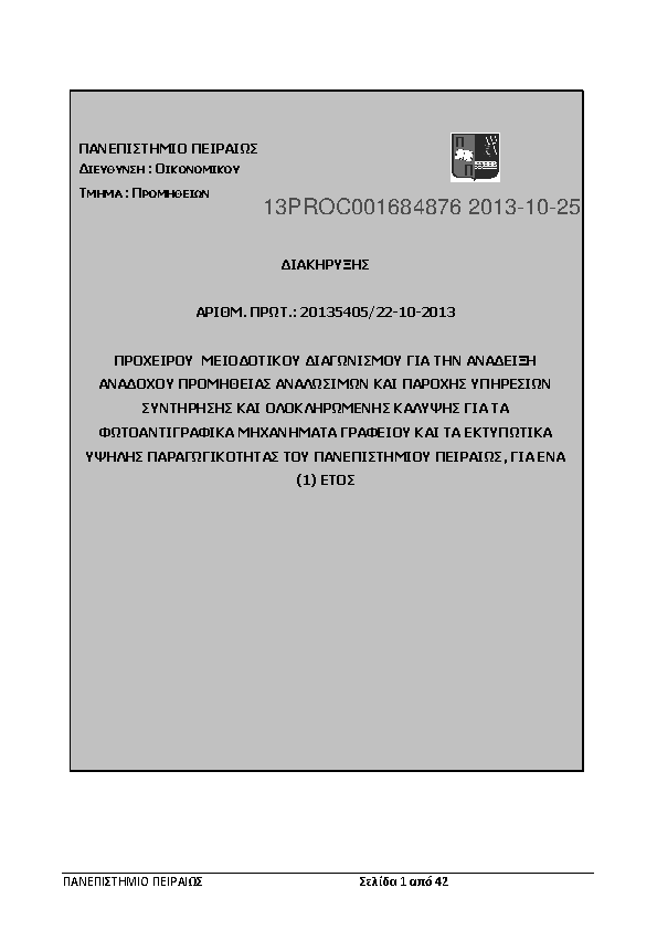 Αναζήτηση σε προκηρύξεις και συμβάσεις για: