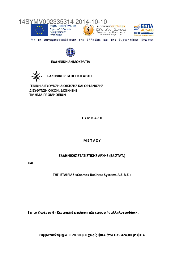 6. ΣΥΜΒΑΣΗ ΜΕΤΑΞΥ ΤΗΣ ΕΛΣΤΑΤ ΚΑΙ ΤΗΣ ΕΤΑΙΡΕΙΑΣ ΤΕΧΝΙΚΟΜΕΡ ΑΕ