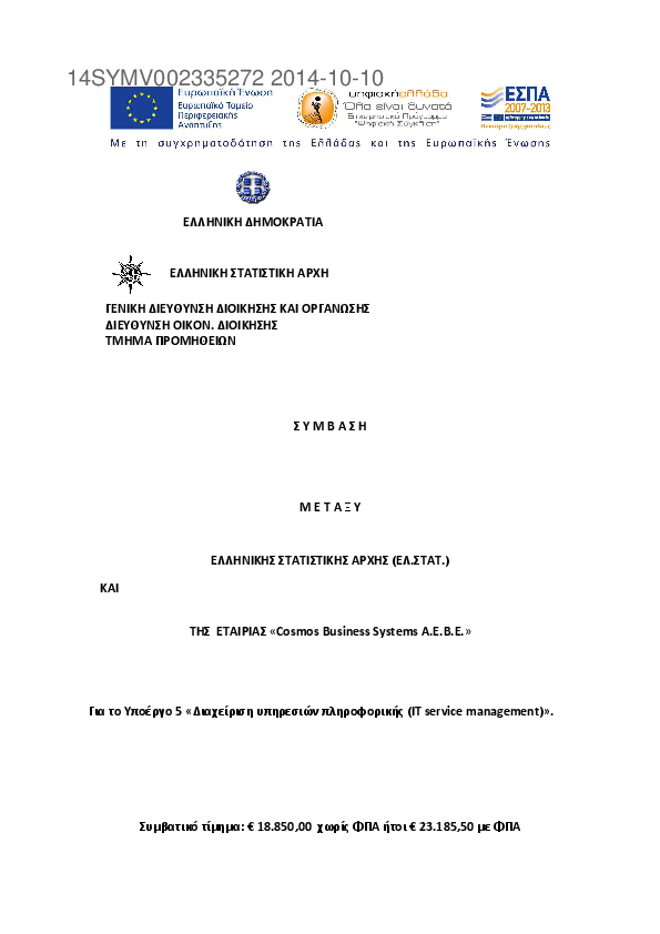 2. Σύμβαση για το Υποέργο 5 «Διαχείριση υπηρεσιών πληροφορικής (IT service management)»
