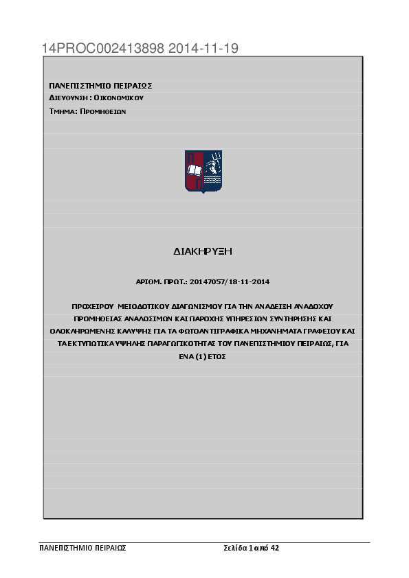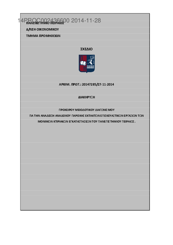 Αναζήτηση σε προκηρύξεις και συμβάσεις για: