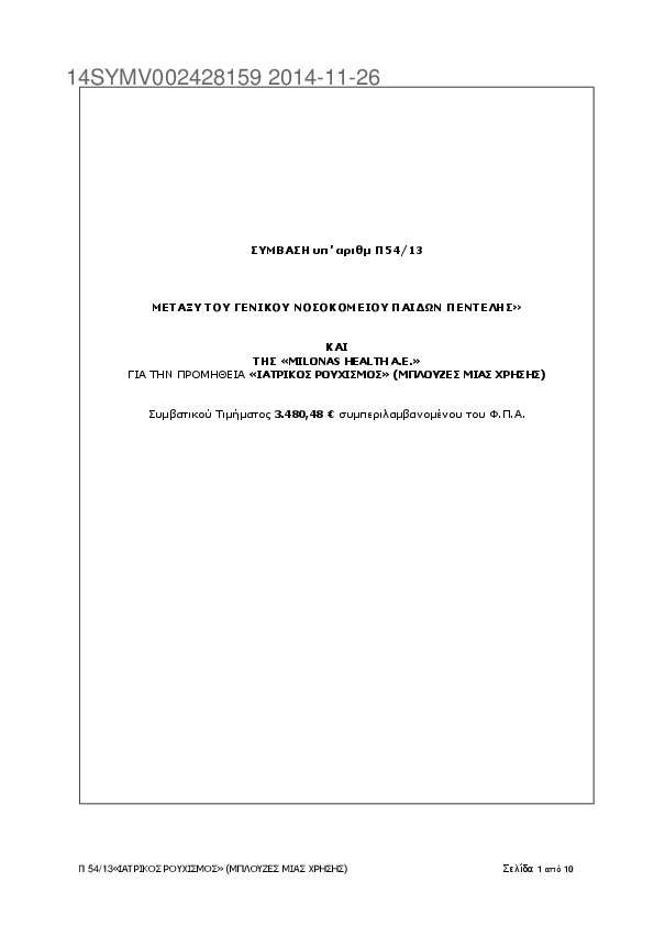 4. Π54/13 ΣΥΜΒΑΣΗ ΓΙΑ ΠΡΟΜΗΘΕΙΑ ΙΑΤΡΙΚΕΣ ΜΠΛΟΥΖΕΣ