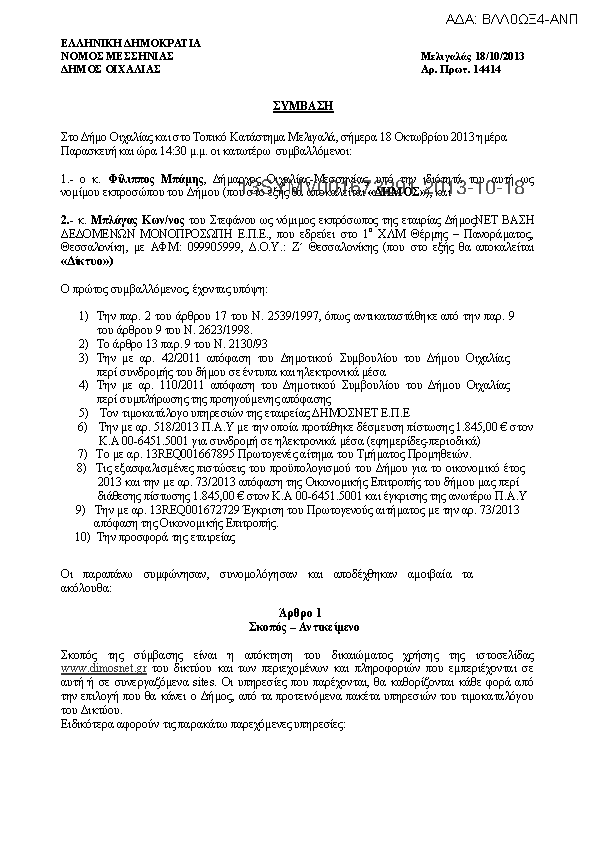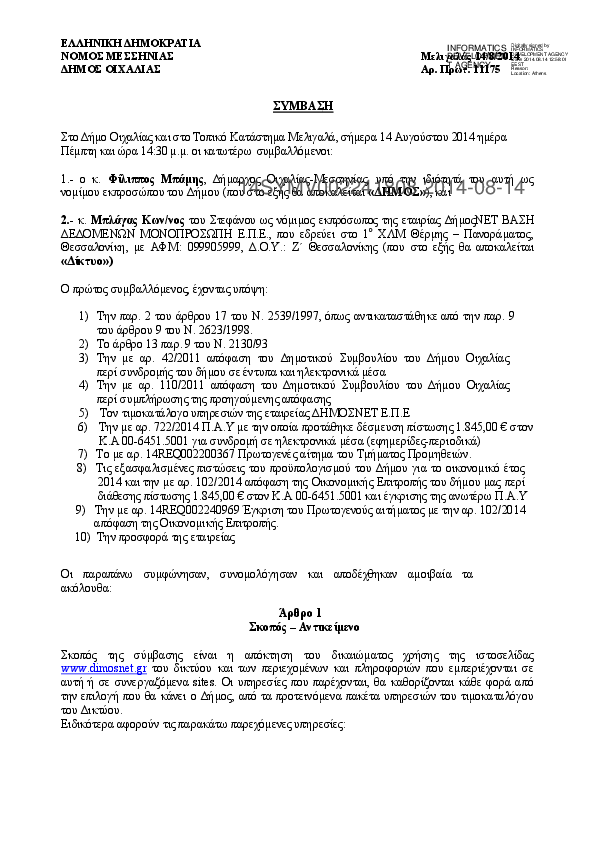 1. ΣΥΜΒΑΣΗ ανάθεση για την παροχή υπηρεσιών από διαδικτυακή βάση πληροφοριών και εφαρμογών ΟΤΑ και νο