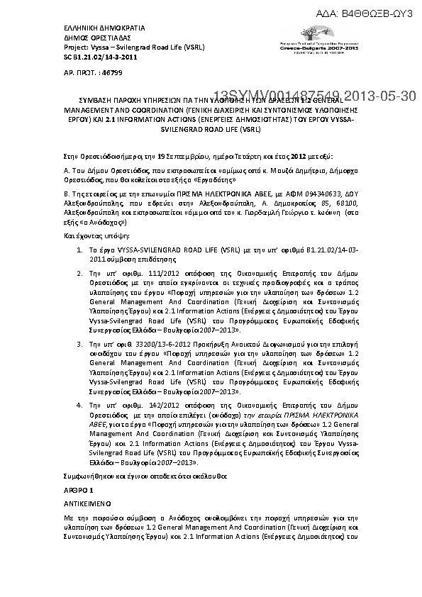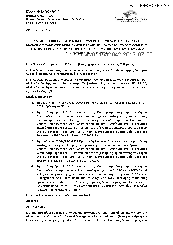 1. Παροχή υπηρεσιών για τις δράσεις 1.2 & 2.1 του έργου VSRL