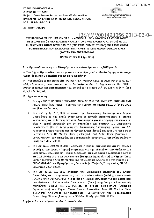 2. Παροχή υπηρεσιών για τις δράσεις 1.2 και 2.1 του έργου CBRAOMRAAR