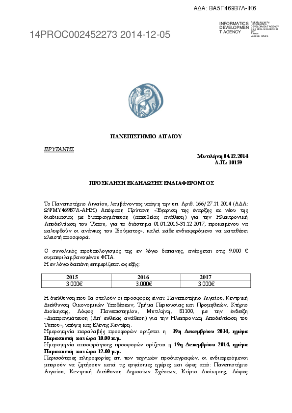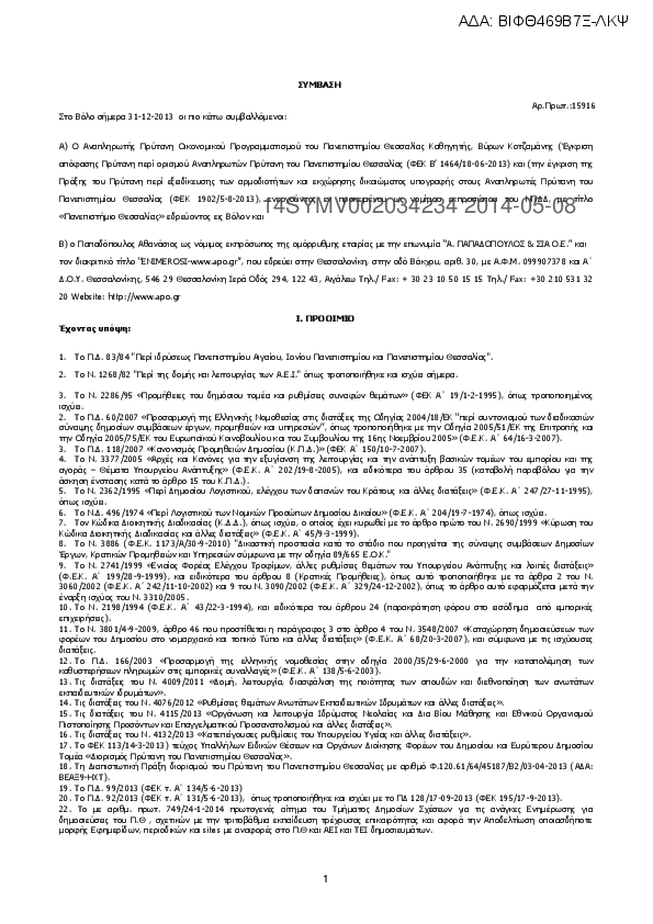 Αναζήτηση σε προκηρύξεις και συμβάσεις για: