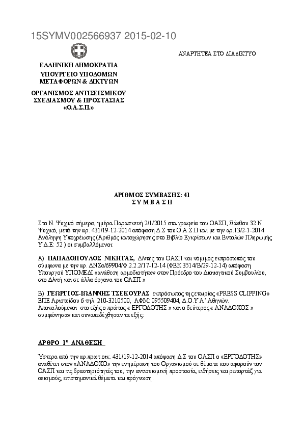 9. ΣΥΜΒΑΣΗ PRESS CLIPPING ΓΙΑ ΕΝΗΜΕΡΩΣΗ ΟΡΓΑΝΙΣΜΟΥ